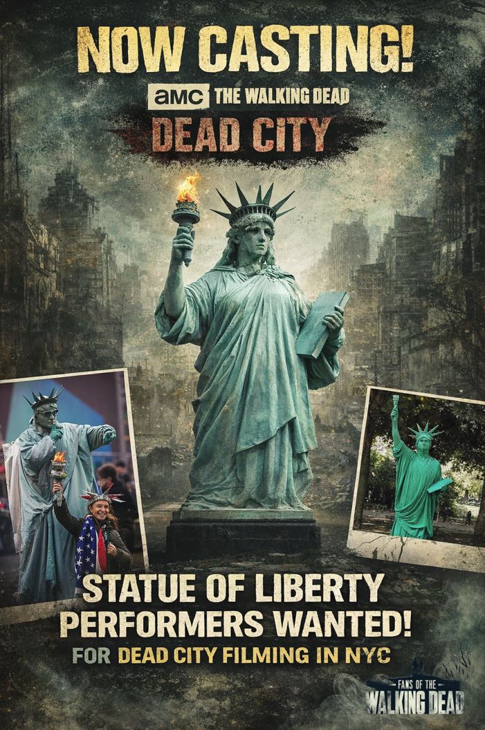 Waldron Casting has issued a new casting call tied to the The Walking Dead universe, seeking experienced Lady Liberty performers for background work on The Walking Dead: Dead City.