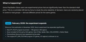 A newer report from the price-tracking site psprices claims that the pricing differences are part of an intentional experiment. The analysis states that Sony began testing the concept in November 2025 and has gradually expanded the program.