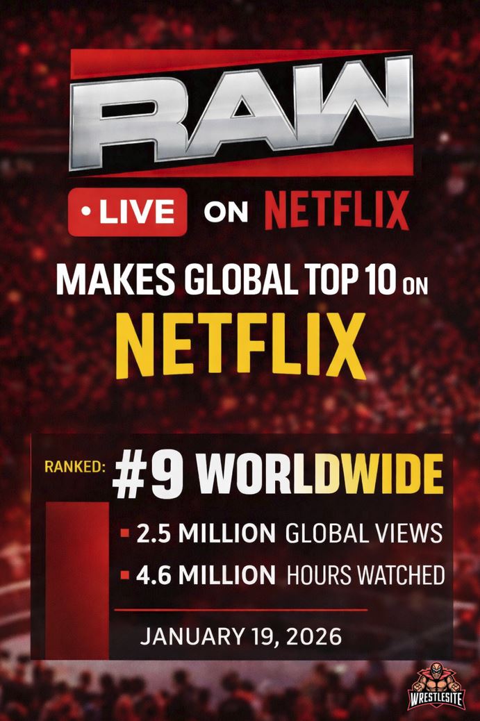 – WWE RAW ranked #9 globally on Netflix for January 19, 2026