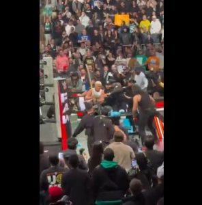The show ends with Punk choking Logan Paul with a kendo stick and Roman Reigns spearing Bronson Reed through the ringside barrier.